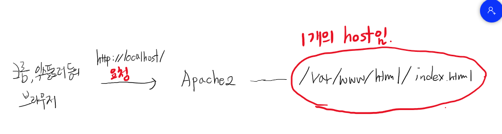 원래 Apache를 설치하면 /var/www/html 디렉토리에 있는 웹 문서를 로드하여 웹 서버를 서비스하는데, 이 상태는 하나의 host가 서비스되는 것이다. 아래와 같이 말이다.