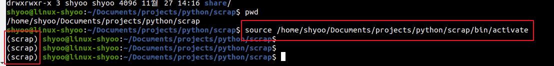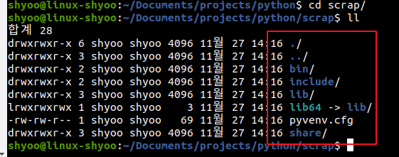 python3 -m venv scrap(가상 공간 이름)