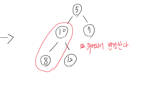 10을 루트에 넣고 보니 위배되는 부분들이 존재한다. 이를 풀기 위해 계속 구조를 재조정한다.