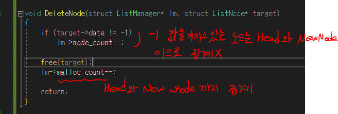 void DeleteNode(struct ListManager* lm, struct ListNode* target)