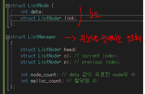일단 위 구조로 생겨먹었고, 노드 구조체와 그 노드들을 담고 관리하는 자료구조 구조체가 있다