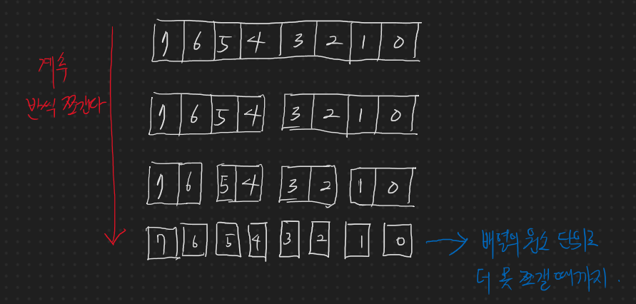 1. 배열을 원소 단위로 쭉~~ 나눴다가