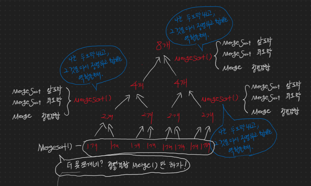 이번에는 병합 정렬이다. 이게 생각보다 간단하긴 한데 복잡하다(?) 일단 시작한다.