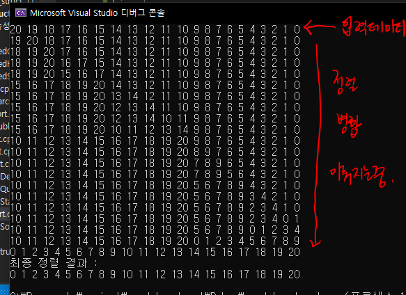 printf("최종 정렬 결과 : \n");
