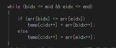 while (bidx <= mid && eidx <= end)