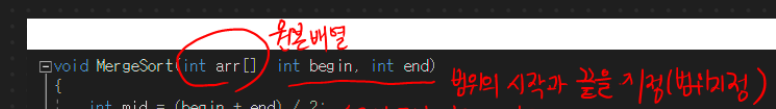 void MergeSort(int arr[], int begin, int end)