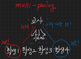 질문을 하는 학생들 -> 패킷을 송신하는 클라이언트