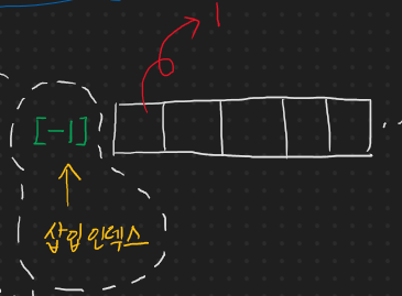 인덱스가 비워져 있는지를 확인하기 위해선 아까 삭제 연산에의 약속대로 삽입 인덱스가 -1인지를 확인하면 된다.