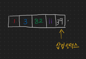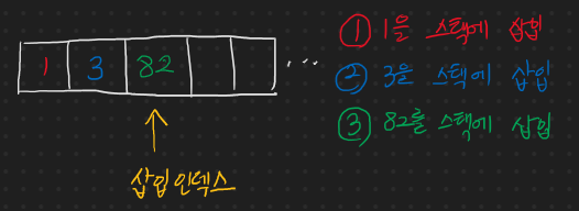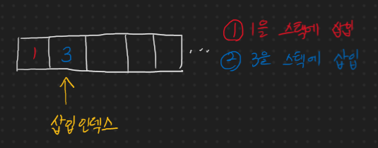 단순 배열 기반 스택에서의 삽입
