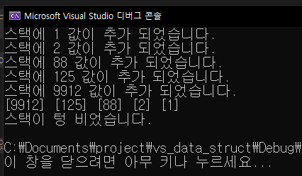 printf("스택이 텅 비었습니다.\n");