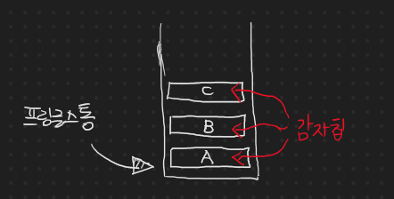 A가 먼저 들어갔고 -> 그 다음 B가 그 위에 쌓이고 -> 그 후 C가 들어가면서 그 위에 쌓이는 것이다.