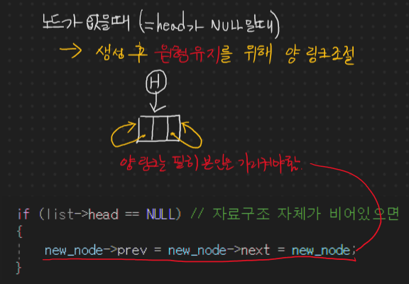 new_node->prev = list->head->prev; // 2. 기존 끝 노드 <- [새 노드] 연결
