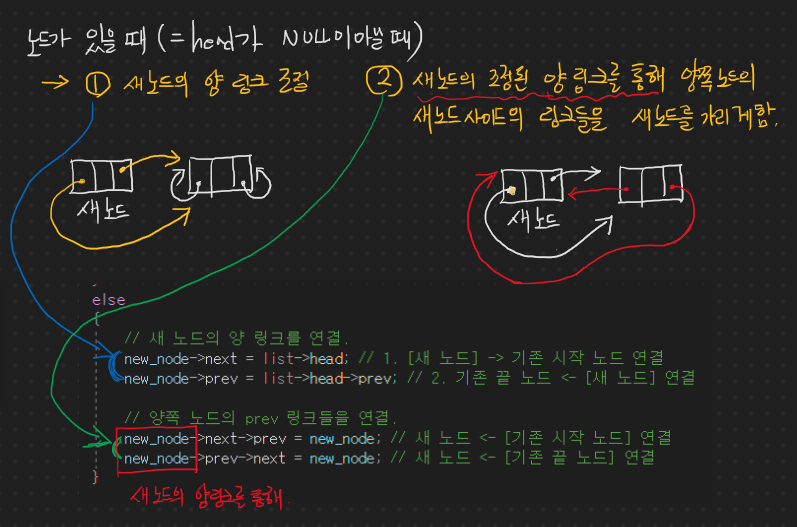 new_node->next->prev = new_node; // 새 노드 <- [기존 시작 노드] 연결