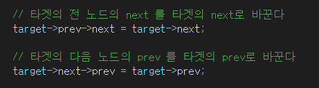 // 타겟의 전 노드의 next 를 타겟의 next로 바꾼다