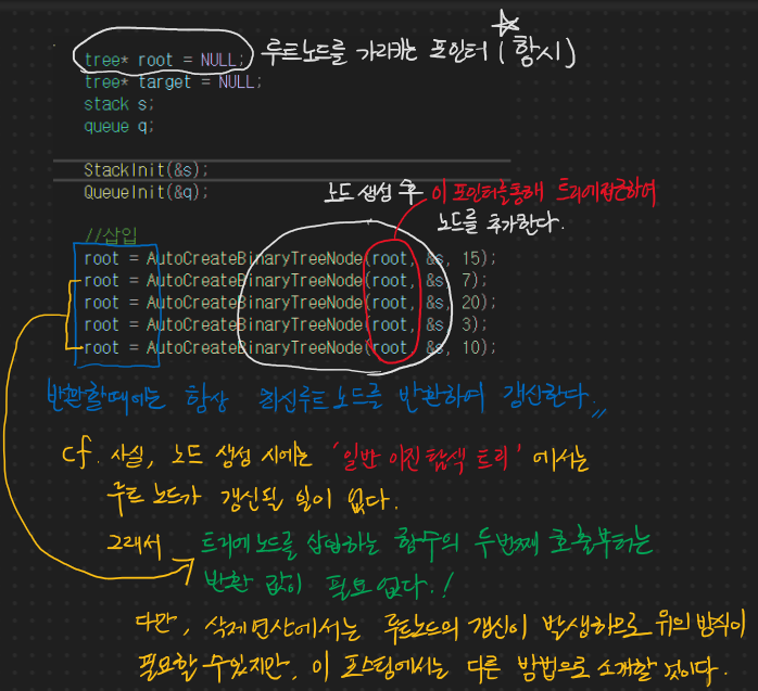 삽입 연산을 하기 이전에 트리에 접근할 때에는 무조건 루트 노드부터 접근을 시작해야한다. 그 루트 노드로의 접근을 어떤 식으로 할 수 있는지, 그 루트 노드를 어떻게 정하는지를 기록한다.