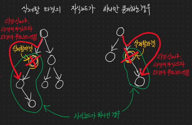 삭제할 타겟의 자식 노드가 하나만 존재하는 경우