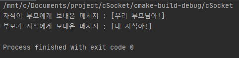 printf("자식이 부모에게 보내온 메시지 : [%s]\n", buf);