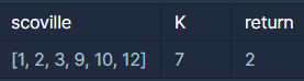 - 모든 음식의 스코빌 지수를 K 이상으로 만들 수 없는 경우에는 -1을 return 합니다.