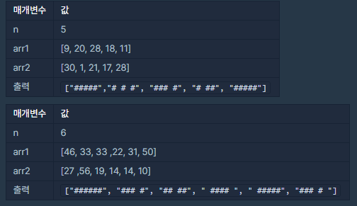 vector<string> solution(int n, vector<int> arr1, vector<int> arr2) {
