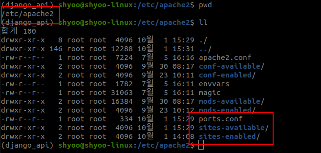 먼저, /etc/apache2 경로의 sites-available/ 디렉토리 내에 필요한 파일을 구비할 것인데, sites-available 디렉토리는 현재 비활성 중인 사이트들의 설정 파일을 담고 있는 디렉토리이다.