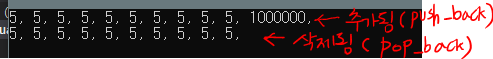 push_back 함수는 벡터의 가장 마지막에 요소를 추가, pop_back() 함수는 가장 마지막 요소를 삭제한다. 11번 라인에서의 주석처럼 pop_back()는 리턴 값이 없고 삭제만 가능하다.