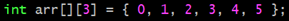 단, 위와 같이 행과 열 모두 생략할 경우 2x3인지, 3x2인지, 0을 생략한 경우까지 봐야 하는지 사람의 입장에서도 알 수 없기 때문에 행과 열 인덱스를 모두 생략할 수 없다. 2차원 배열에서 인덱스를 생략할 때는 행만 생략 가능하고, 열은 꼭 제시해야만 한다.