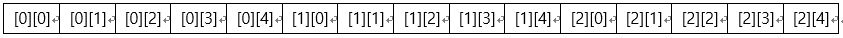 2차원 배열도 사실은 메모리 상에 1차원 배열의 형태로 존재한다. 메모리의 물리 구조적으로 1차원의 형태로 이루어져 있기 때문이다. 다음의 예는 2차원 배열의 메모리 상 할당된 형태를 보인다.