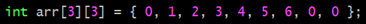 위와 같이 열에 대해서 초기화 값을 생략할 경우 0으로 자동 초기화가 이루어진다. 두 예제는 같은 값으로 초기화가 이루어진다.