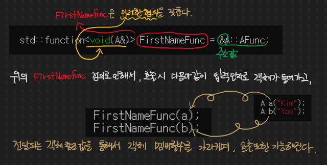 std::function<void(A&)> FirstNameFunc = &A::AFunc;
