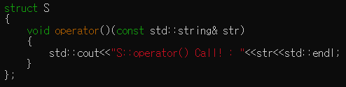 std::cout<<"S::operator() Call! : "<<str<<std::endl;